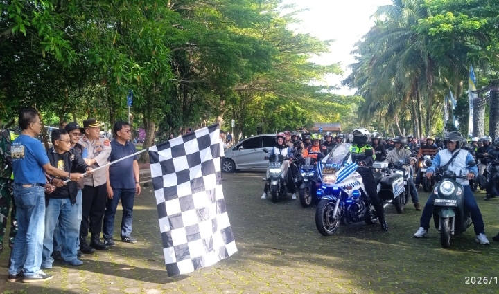 Ciamis, Sosio.com,- Bupati Ciamis, Dr. H. Herdiat Sunarya, secara resmi melepas kegiatan “Tiba Tiba Touring Jilid V Tahun 2026”, sebuah agenda touring wisata yang menyasar sejumlah destinasi unggulan di Kabupaten Ciamis. Pelepasan peserta berlangsung di Taman Lokasana Ciamis sebagai titik start, Sabtu (24/01/2026).